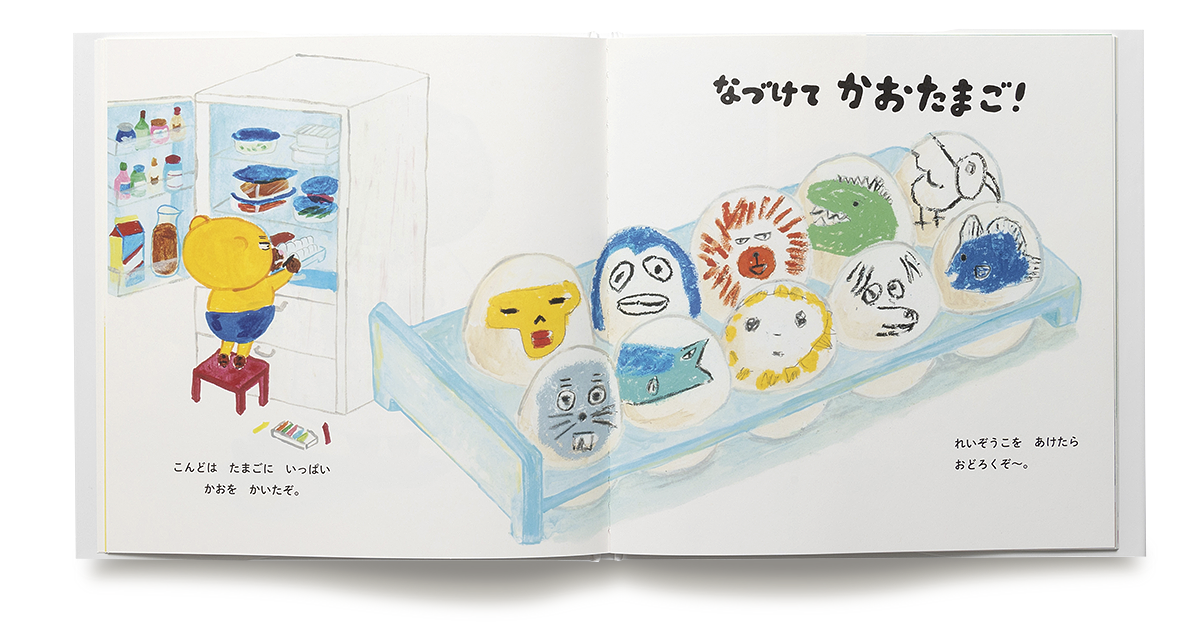 ママのお気に入りのカップを花とダンゴムシで飾ったり、冷蔵庫のたまごにお絵かきしたり。